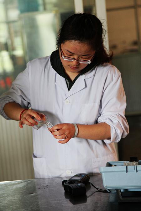圖為供水公司水質化驗員對學校內管網水進行現場檢測化驗