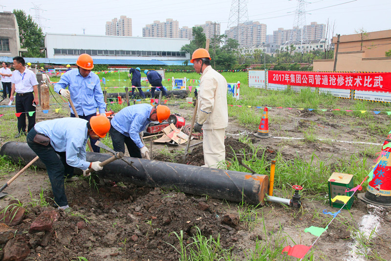 為檢驗和提高供水、排水和水處理等生產(chǎn)運營單位的管道爆管事故的應(yīng)急搶修和現(xiàn)場操作能力,增進(jìn)單位間技術(shù)交流,6月27日下午,集團(tuán)公司舉行了管道搶修技術(shù)比武活動。柯橋供水公司、濱海供水公司、排水公司、江濱水處理公司、紹興水處理公司等5家供排水與水處理生產(chǎn)運營單位各派一支隊伍參加了此次比武。