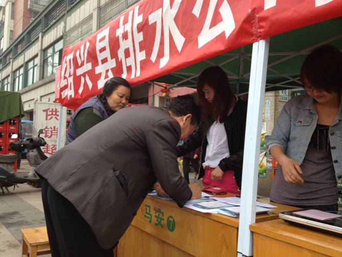 4月15日排水公司工作人員一行10人來(lái)到錢(qián)清鎮(zhèn)春天雅苑小區(qū),向小區(qū)居民宣傳排水知識(shí),發(fā)放宣傳單,提供排水服務(wù)。