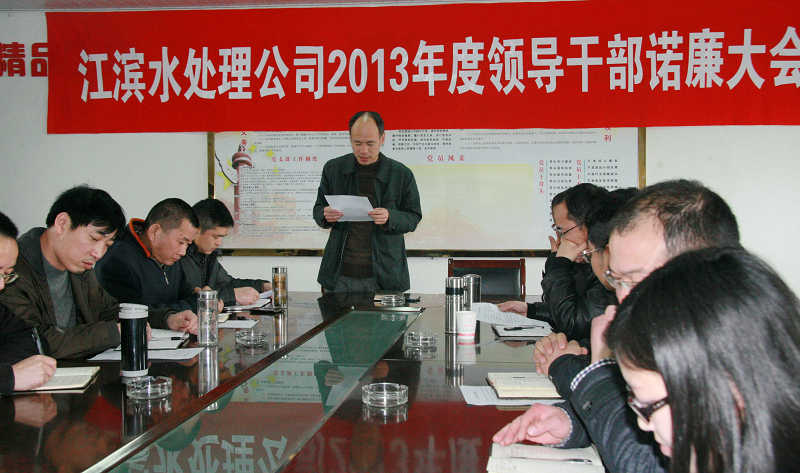 3月26日下午,江濱水處理公司2012年度領(lǐng)導(dǎo)干部諾廉大會(huì)在二樓會(huì)議室舉行,黨支部書(shū)記傅小春主持會(huì)議,公司中層正職以上干部共計(jì)9人結(jié)合自身工作崗位,就如何加強(qiáng)廉潔自律意識(shí)、做好廉政風(fēng)險(xiǎn)防控做出承諾,接受職工監(jiān)督。