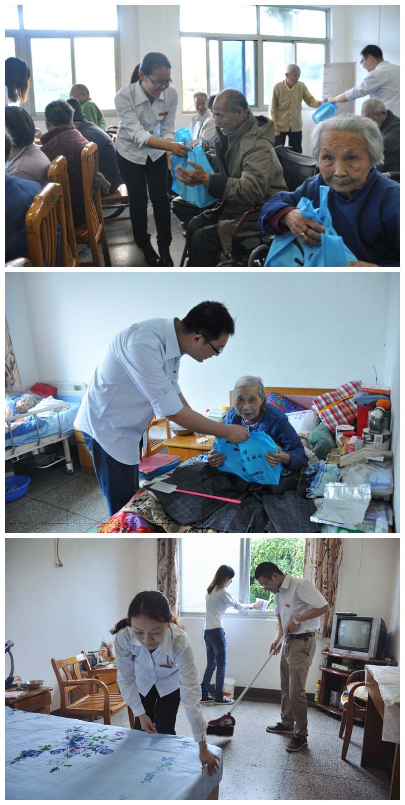 為發(fā)揚(yáng)中華民族尊老愛(ài)老的傳統(tǒng)美德,增強(qiáng)我公司青年志愿者尊老愛(ài)老的意識(shí)。5月8日上午,公司10多名志愿者來(lái)到柯橋夕陽(yáng)紅中心,為老人鋪床打掃衛(wèi)生,并將公司精心準(zhǔn)備的蛋糕、水果、毛巾等慰問(wèn)品一一送到老人們的手中,奉獻(xiàn)自己的一份愛(ài)心。