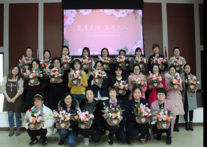 近日,為紀念“三八”國際勞動婦女節,豐富女職工的精神文化生活,增進同事之間的交流,紹興柯橋濱海供水公司舉辦了一次“花漾生活,喜迎三八”花藝培訓活動,共有30名女職工參加。